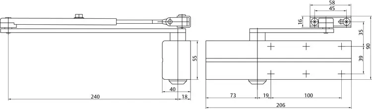 DC140NEW zatvárač EN2/3/4/5 strieborný s ramenom max 100kg/1250mm