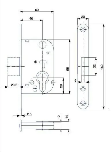 vložkový dvojzápadový prídavný so závorou otvory pre delené štíty bez prevodu povrchová úprava - biely zinok zádlab 40/60 mm čelo 20 mm