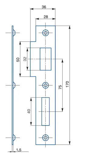 zapadací plech rovný - pre zámok s roztečou 72mm, ľavý alebo pravý