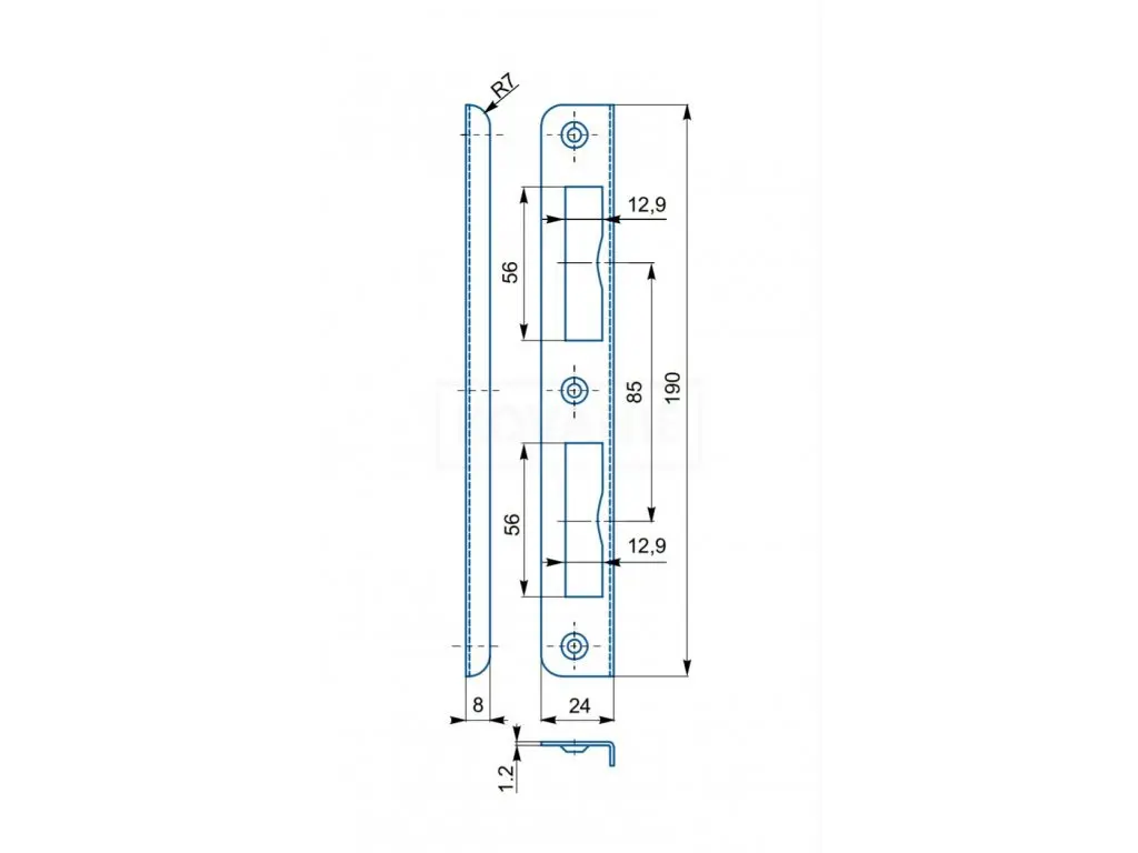 Zapadací plech uhlový K 192 A so zaoblenými rohmi.
