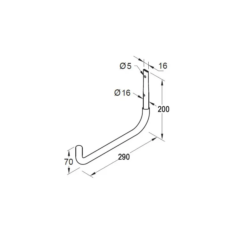 Jednoduchý hák s gumeným krytom, talianska firma BOLIS - Dĺžka: 29 cm - Materiál: oceľ (s práškovým nástrekom) + gumený kryt - Nosnosť: 50 kg