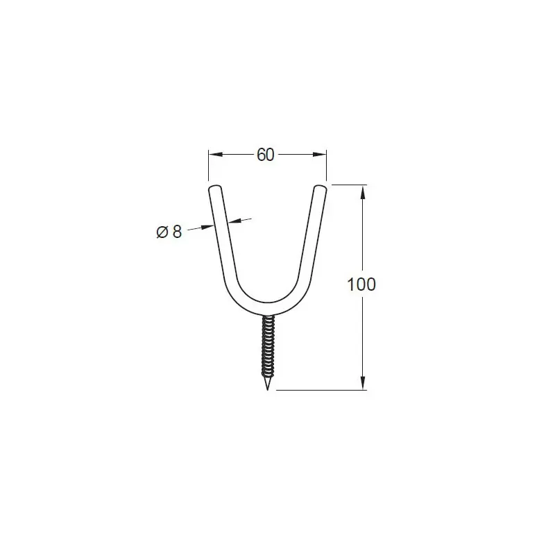 "U" hák so skrutkou od talianskej firmy BOLIS - Materiál: oceľ - Nosnosť: 60 kg - Spôsob montáže: skrutkový - Dĺžka háčika: 100 mm - Rozpätie ramien háku: 60 mm - Hrúbka ramien háčikov: 8 mm