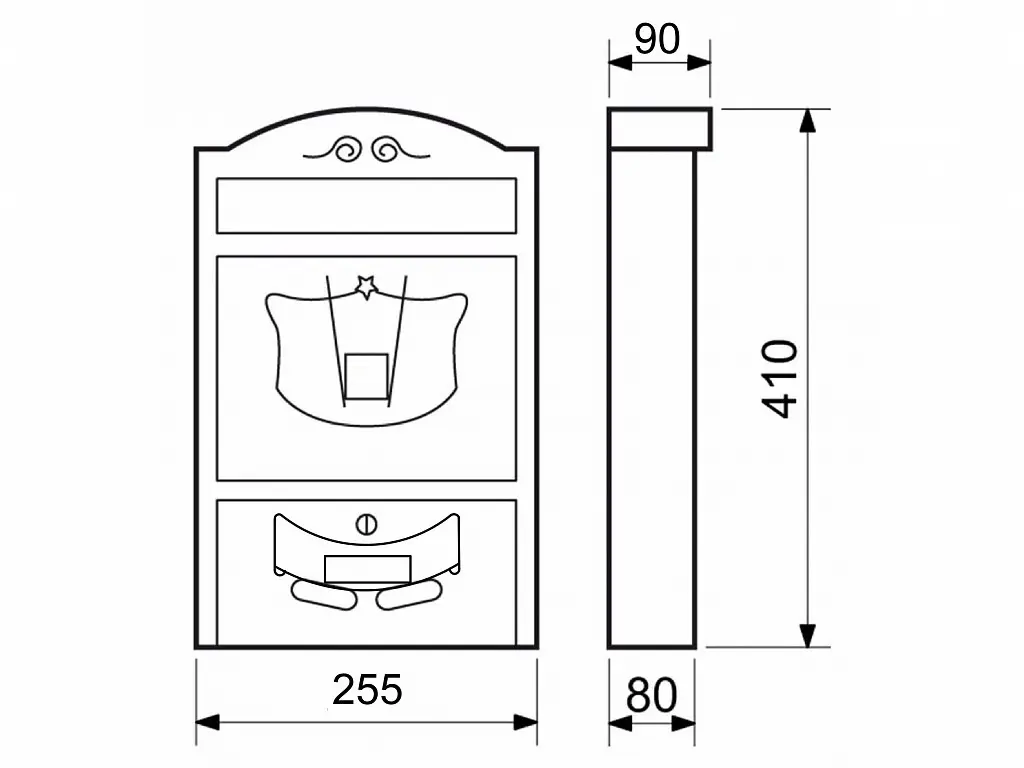 - hliníková schránka - vhod aj výber vpredu - 2ks kľúče - pojme zásielku A4 - montážny materiál