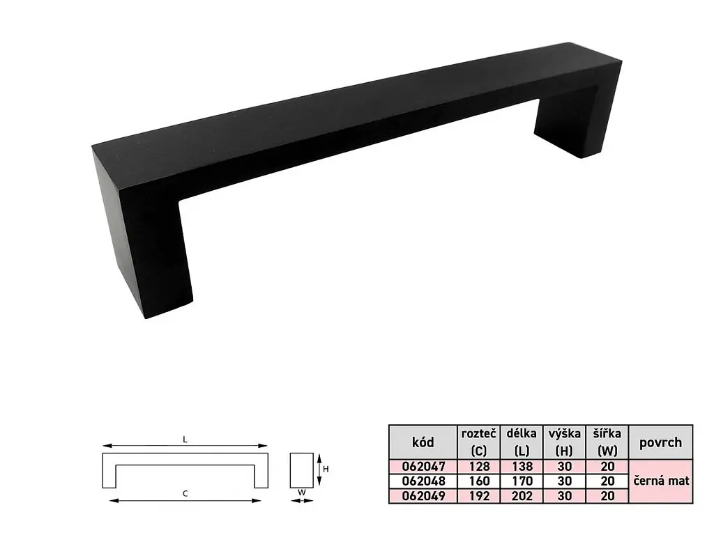 VIKTORIA 192mm uchytka cierna mat