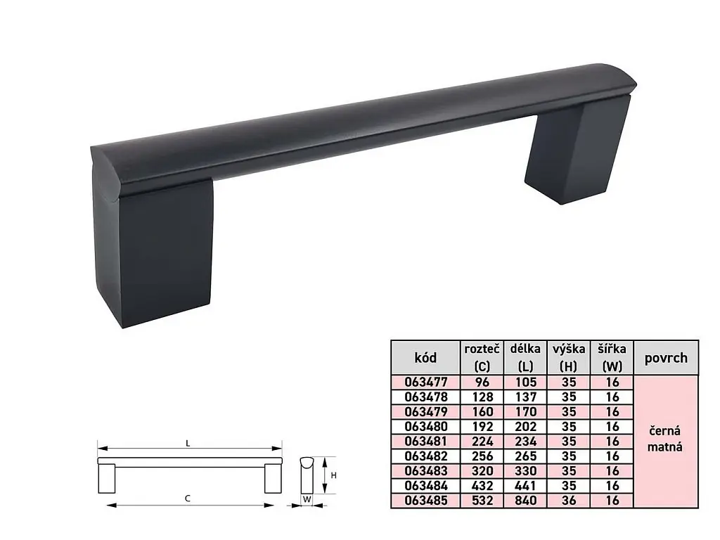 PORTA 192/202mm úchytka čierna matná