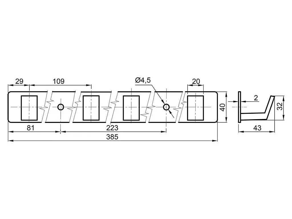 Kovový vešiak na kovovej lište. Povrchová úprava leštený čierny mat. Variant so 4 vešiakmi. Skrutky na uchytenie sú na hlavičke opatrené závitom, na ktorý sa pevne naskrutkuje krytka na zakrytie skrutky. Rozmery lišty: 375 x 40mm Vešiaky sú balené v záťažovom...